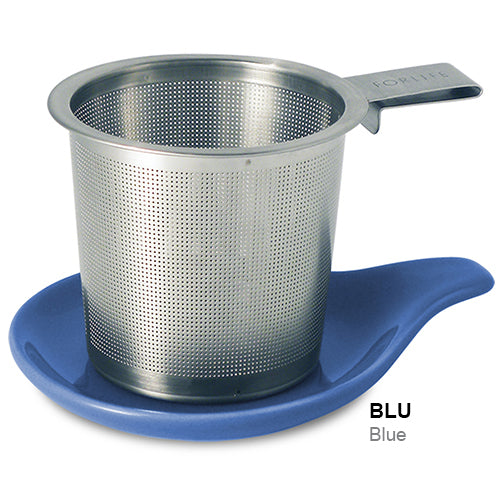 Stainless steel 0.3 mm infuser with ceramic dish. Dish available in Turquoise, Carrot, Lime, Gray, Red, Blue, Purple, and Ivy.